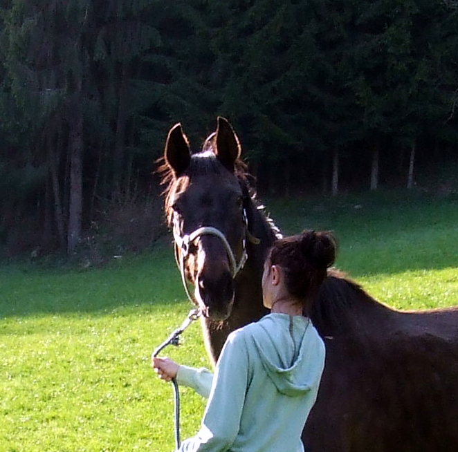 Hannah hat inzwischen fleißig weiter mit Enny Bodenarbeit gemacht und sich auch zum Spazieren gehen und Reite ins Gelände gewagt.