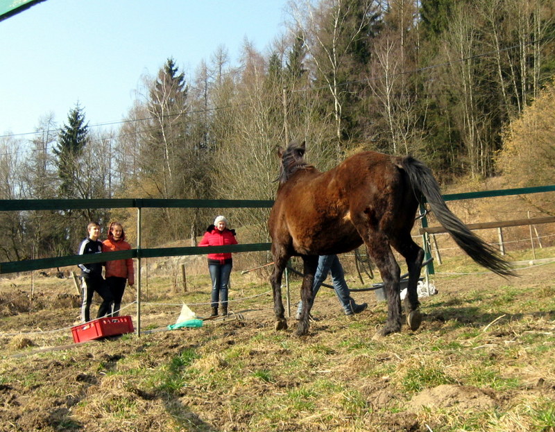 Enny ist immer noch etwas stürmisch, was aber an der Aufregung über ihre Trennung von der Herde liegt und sich stetig bessert.