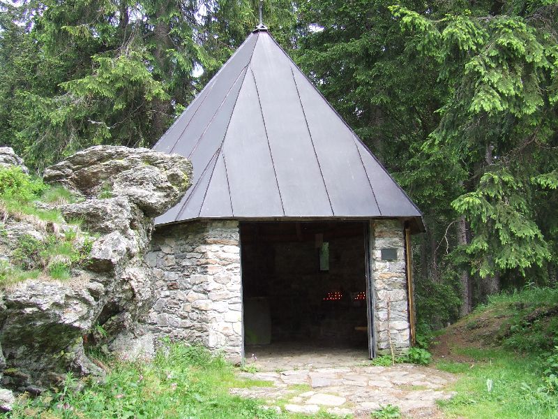 Direkt neben dem Gipfel befindet sich eine kleine Kapelle und das Schutzhaus Falkenstein. Bei Letzterem handelt es sich um ein Gasthaus, wo man ganz gemütlich einkehren und sich stärken kann.