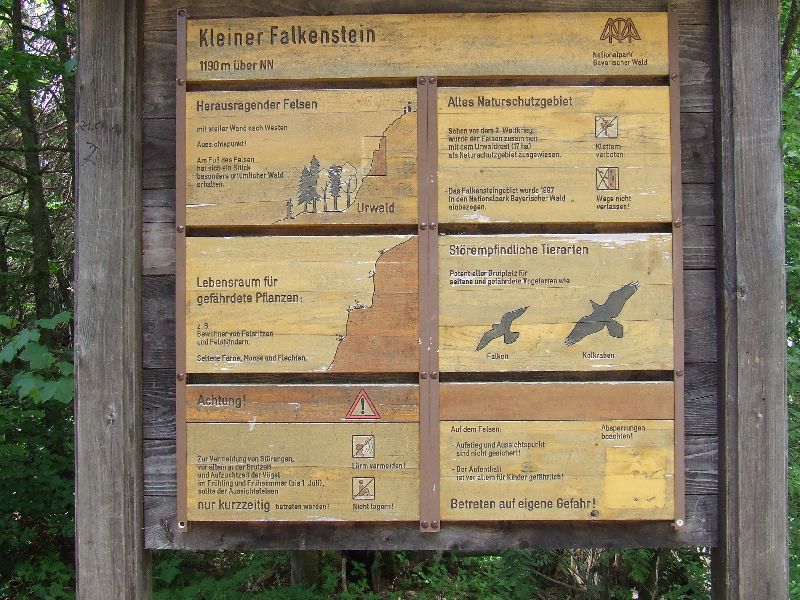 Durch unberührten Wald und die herrlichen Ruckowitzschachten bis zum Gipfel des Großen Falkenstein. Von hier aus hat man eine der schönsten Aussichten des gesamten bayerischen Waldes. Dann zum wenig besuchten Kleinen Falkenstein und neben den Steinbachfällen hinab zum Ausgangspunkt.