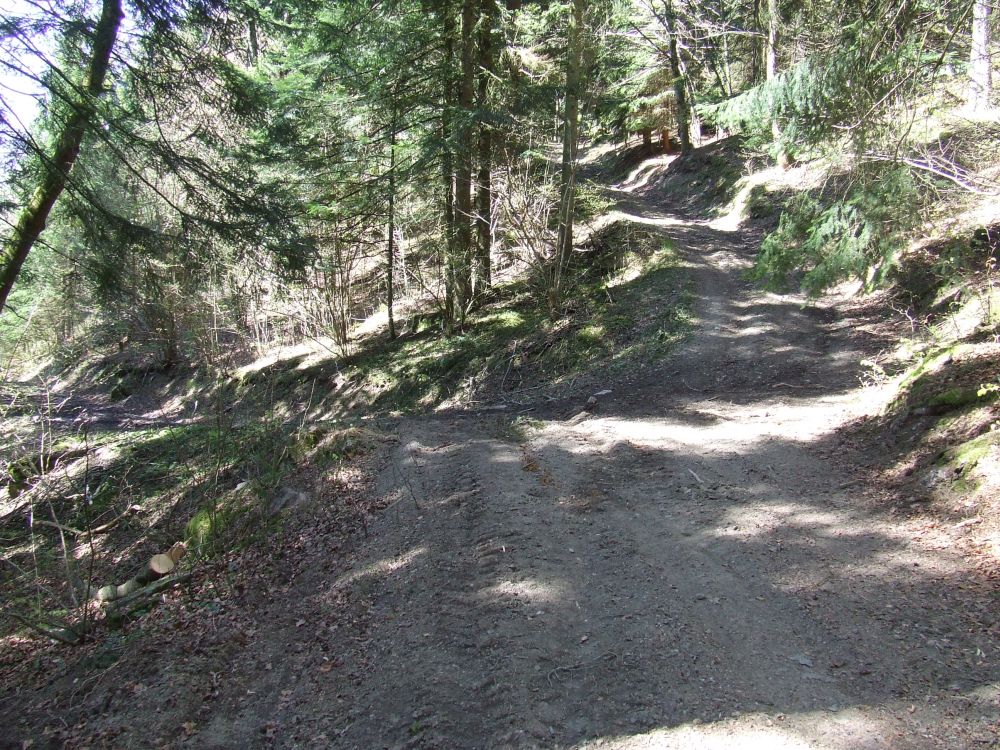 Vom Wolfenhaus weg geht es in einen Feldweg und nach 200 m an einem Bienenhaus vorbei, ein kurzes Stück durch den Fichtenwald. Es folgt ein schöner Mischwald, wo es nach kurzer ebener Strecke bergab weiter geht. Man wandert an einer kleinen Quelle und einem Jägersitz vorbei.